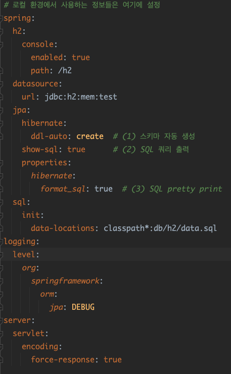 ➡️ 그렇기 때문에 개발을 진행할 때는 기존 application.yml 파일에 이미 설정되어 있는 H2를 사용하고, 서버용 jar 파일을 빌드할 경우에는 빌드 전에 기존에 application.yml 파일에 설정되어 있는 H2 정보 대신에 서버에서 사용하는 DB 정보로 수정하고 빌드하면 됨