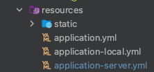 - 프로파일을 설정하기 위해 -local.yml 과 -server.yml 파일 추가하고 각 내용을 구성하기