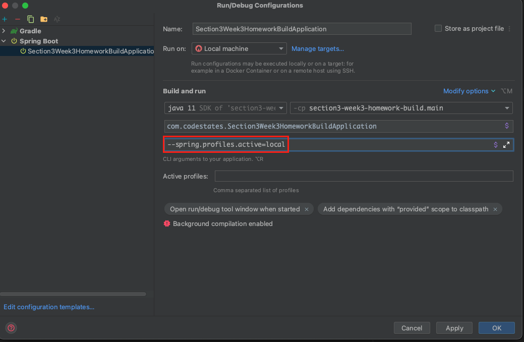 IDE 에서 프로파일 적용하기