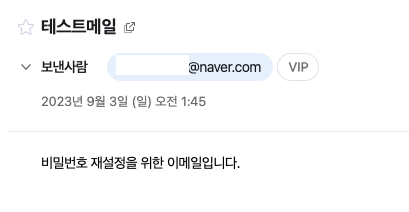 포스트맨으로 200도 잘 떴고, 수신받는 이메일로 들어가 확인해보니 테스트 메일이 잘 들어와 있는 것을 확인할 수 있었다.